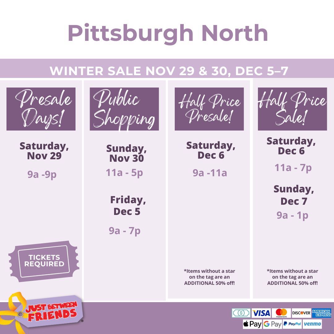 Join us Saturday evenin for our Half Price Sale! The Half Price Sale is where you get 50% on every item at the sale without a star on the JBF tag.